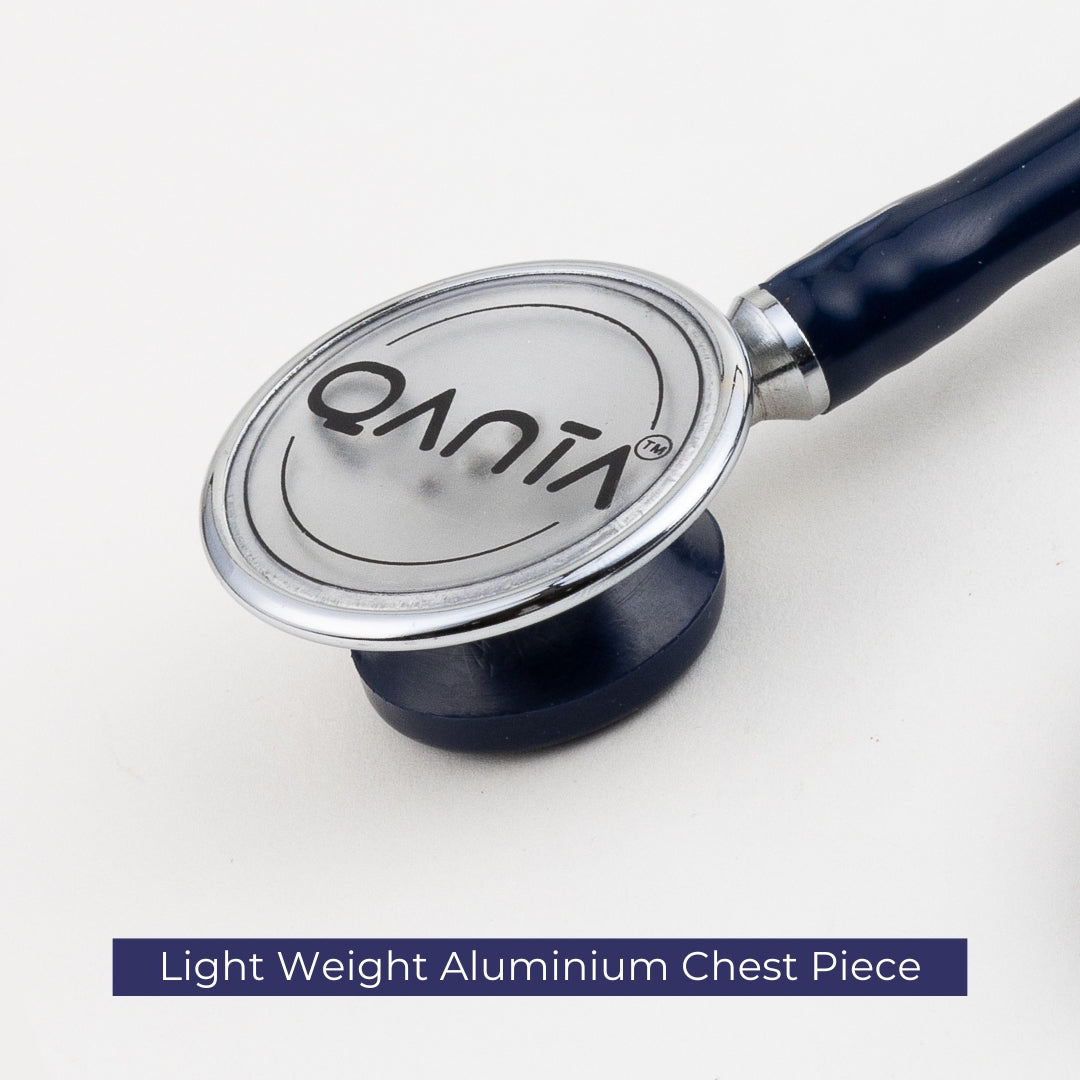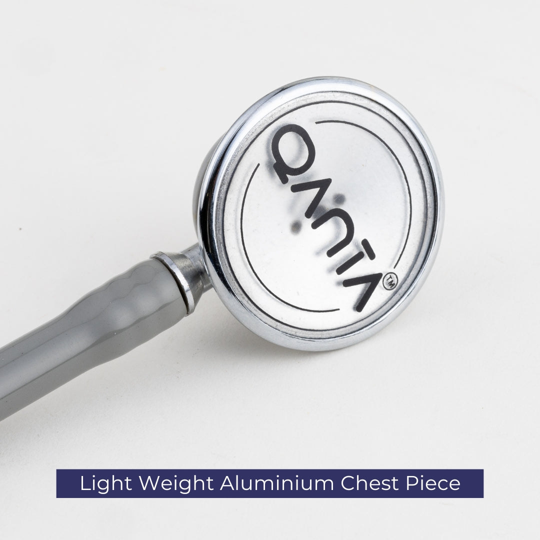 - Sturdy Brass & Lightweight Aluminium Construction: The QANTA® FOCUS features a brass body with a chrome finish for enhanced durability and stability. Its aluminium chest piece ensures a lightweight design while maintaining reliable acoustic performance, making it an excellent choice for everyday diagnostics.