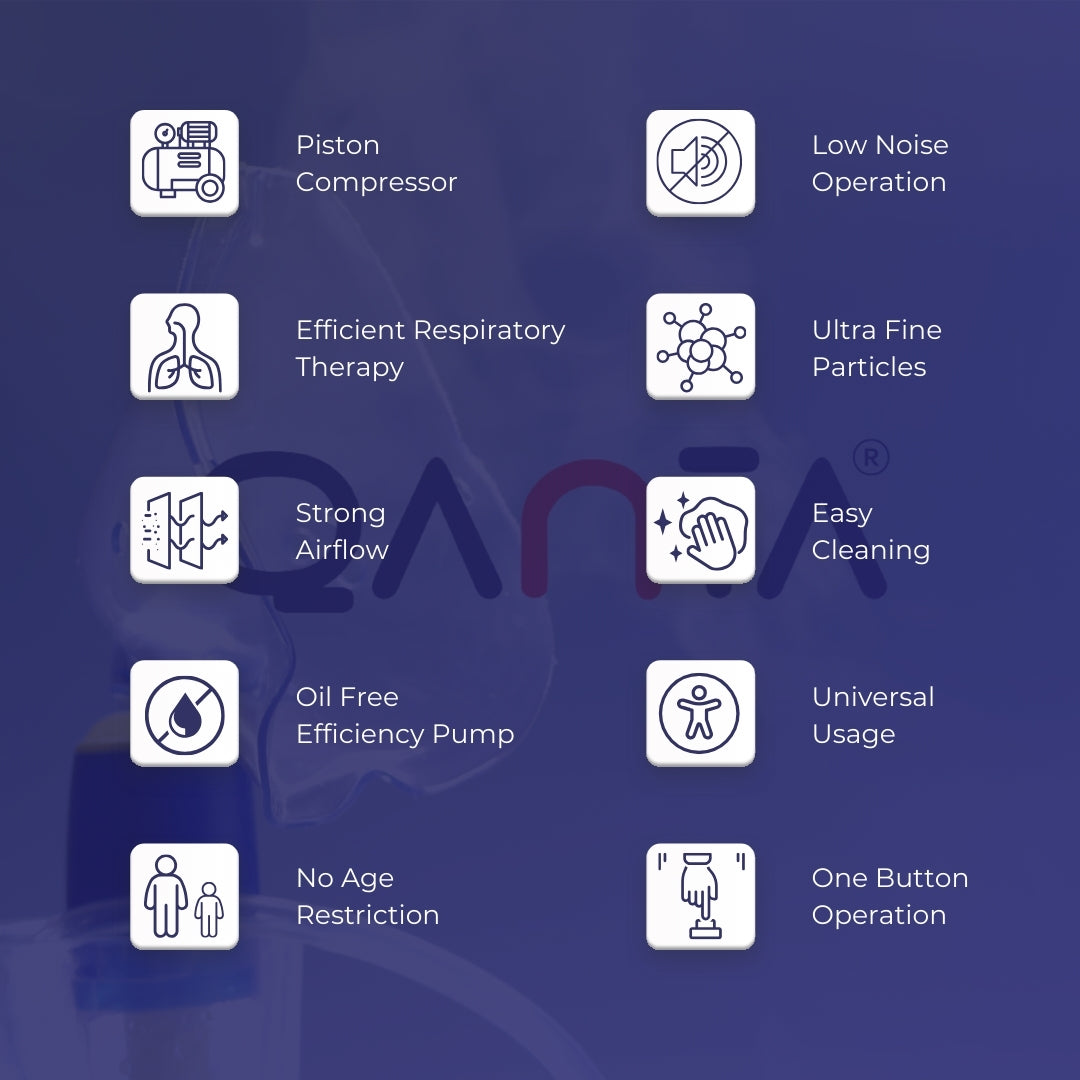 - Compact & Innovative Design: QANTA® ACE Nebulizer is built with user convenience in mind. Its lightweight and compact design makes it easy to carry and store, making respiratory therapy accessible at home or on the go.